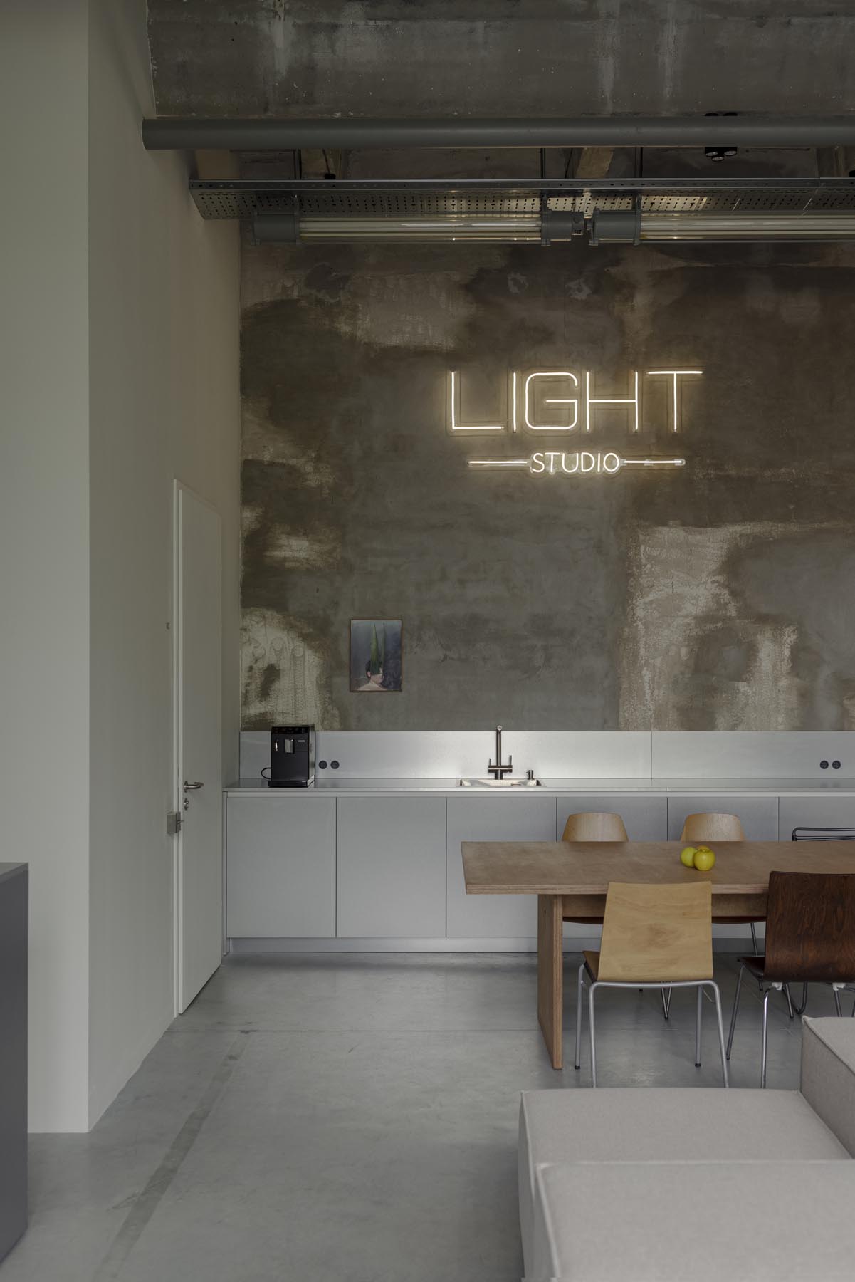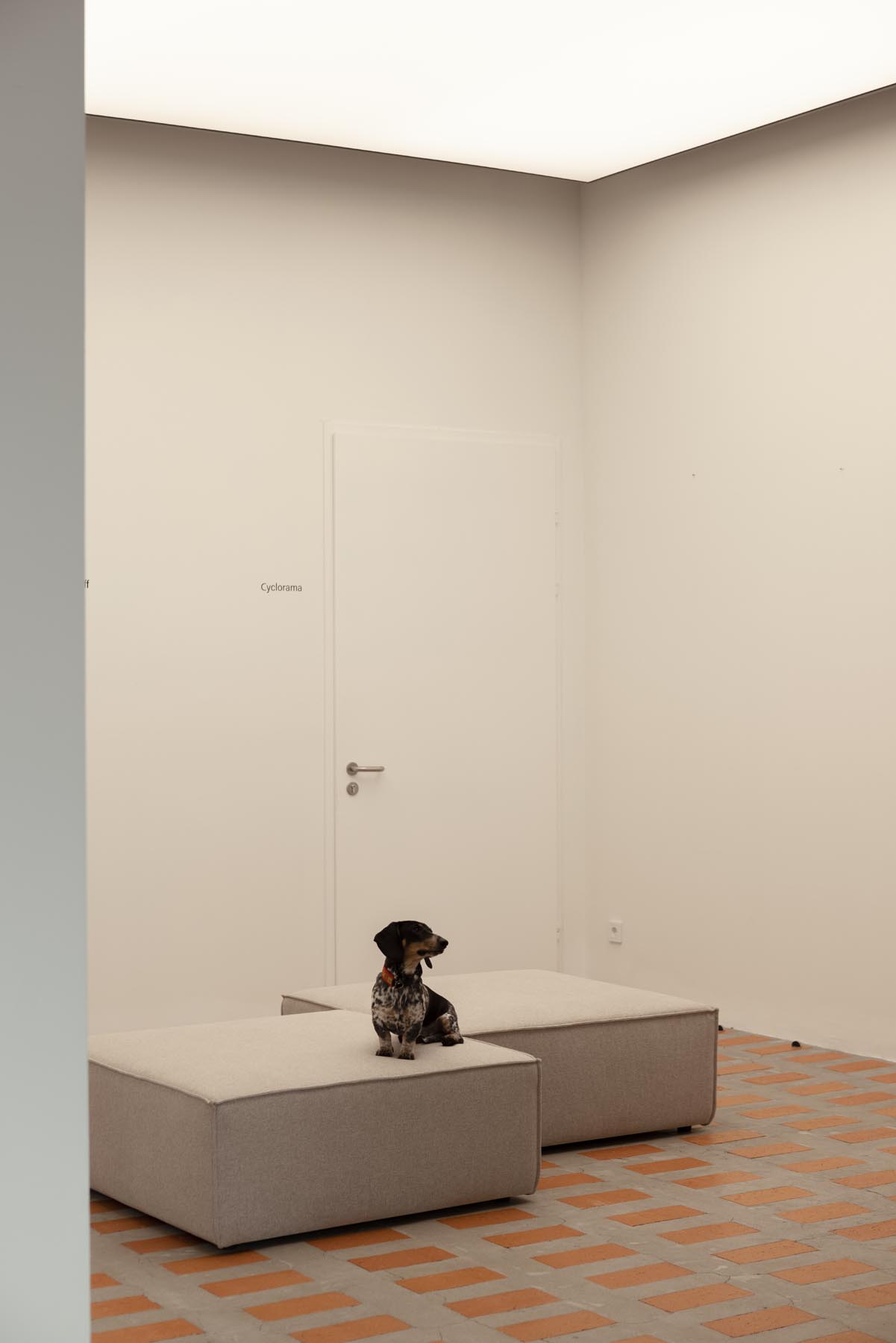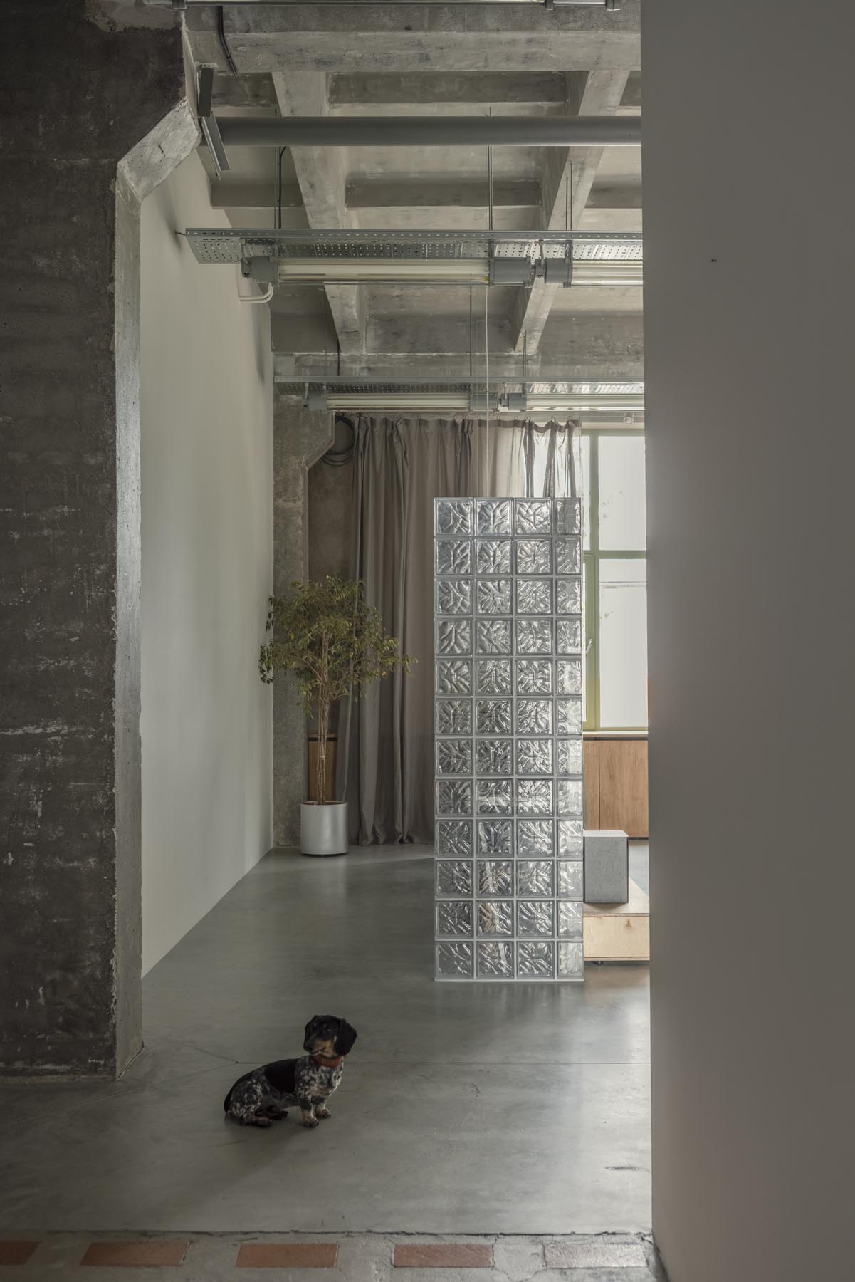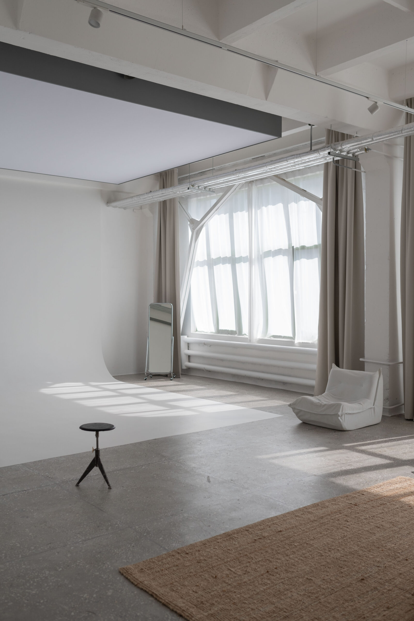 Our new project is the transformation of a former industrial space into a contemporary, multifunctional photography studio. By preserving original elements — terrazzo floors with marble chips, concrete columns, and German industrial light fixtures — we created a contrasting environment where the old and the new speak the same architectural language.