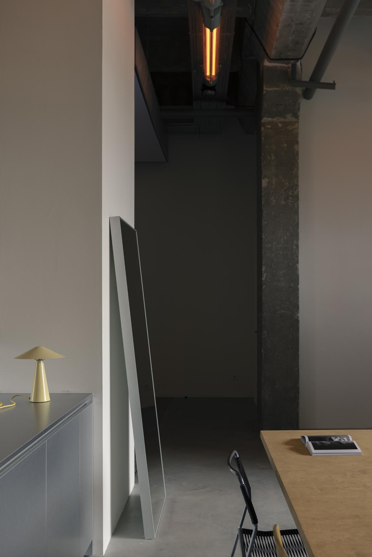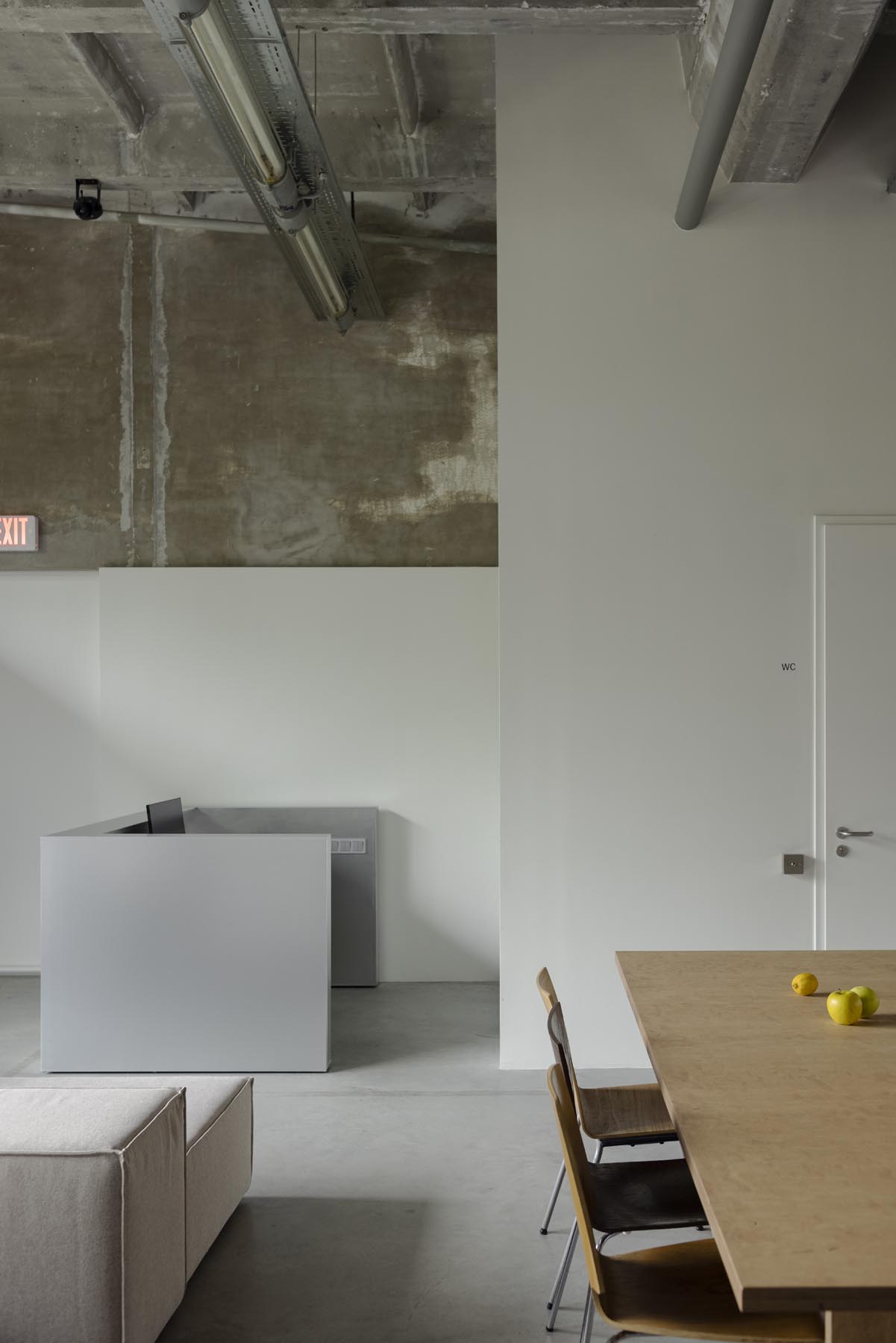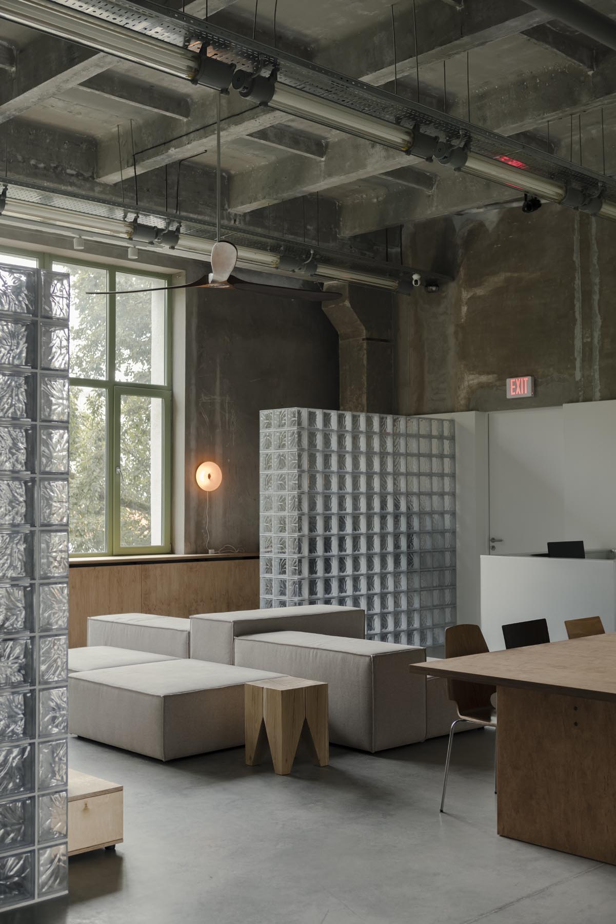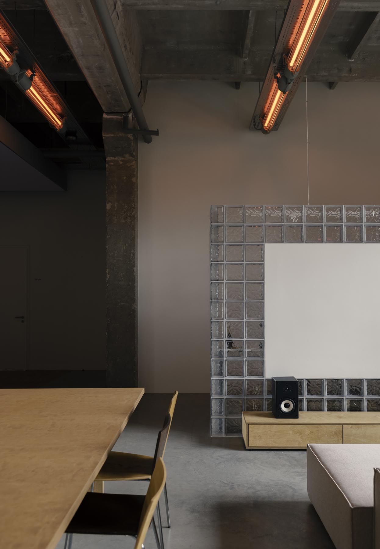 Our new project is the transformation of a former industrial space into a contemporary, multifunctional photography studio. By preserving original elements — terrazzo floors with marble chips, concrete columns, and German industrial light fixtures — we created a contrasting environment where the old and the new speak the same architectural language.