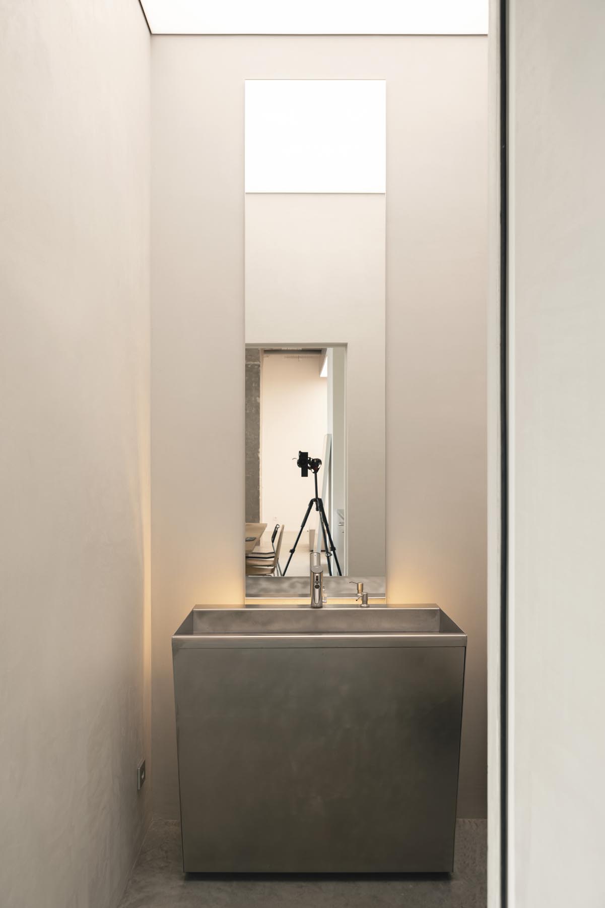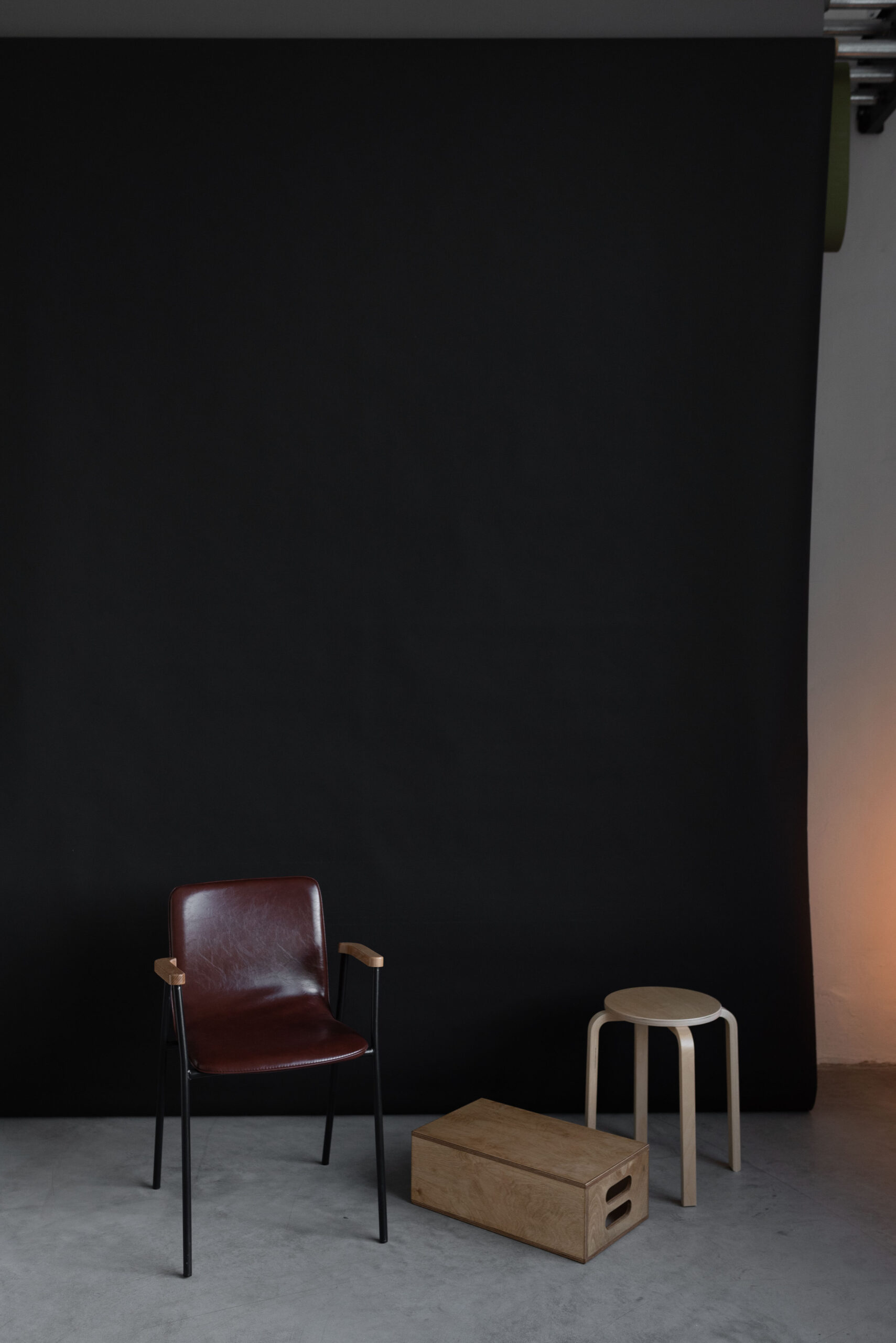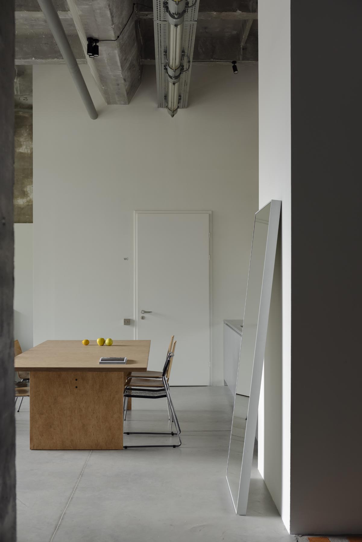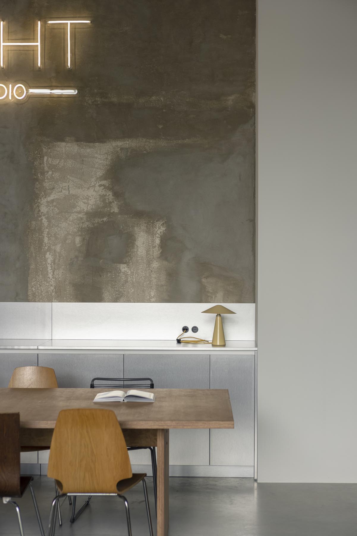 Our new project is the transformation of a former industrial space into a contemporary, multifunctional photography studio. By preserving original elements — terrazzo floors with marble chips, concrete columns, and German industrial light fixtures — we created a contrasting environment where the old and the new speak the same architectural language.